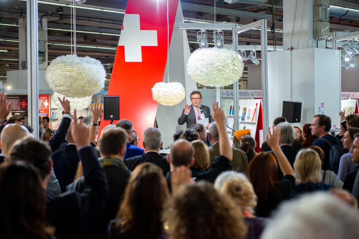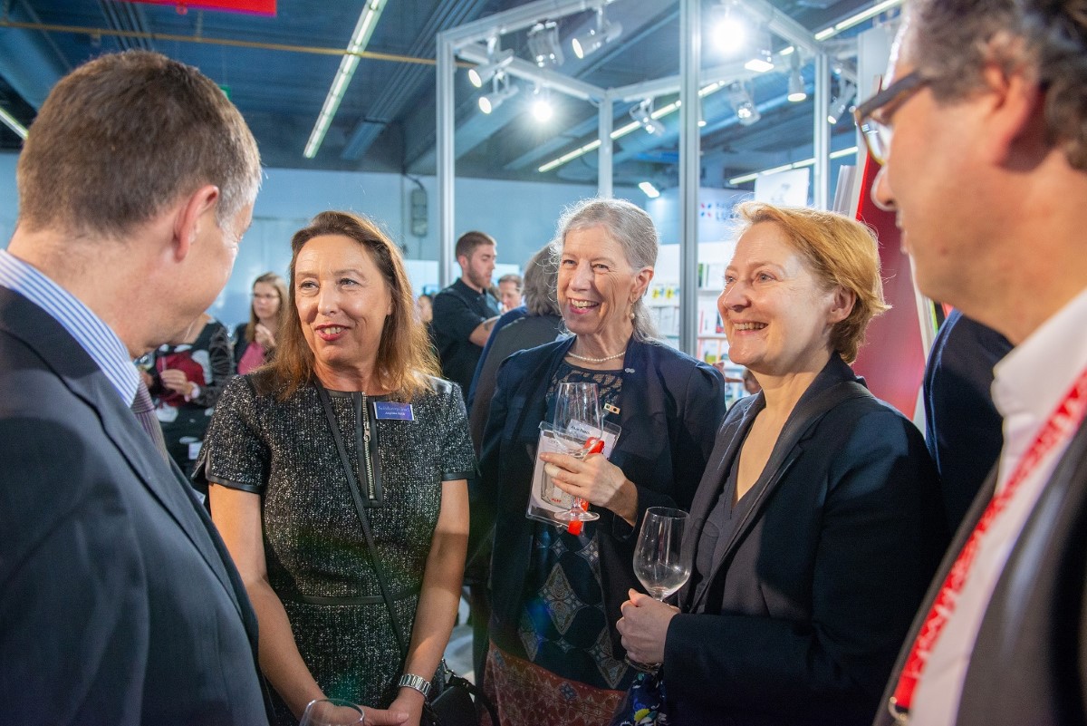v.l.n.r. Angelika Barth, Vertreterin Suhrkamp, Anne Buechi, Versus Verlag, Sabine Dörlemann, Dörlemann Verlag.