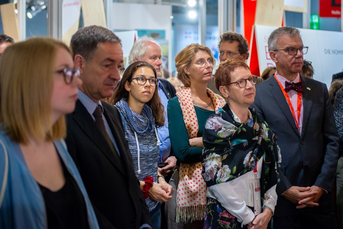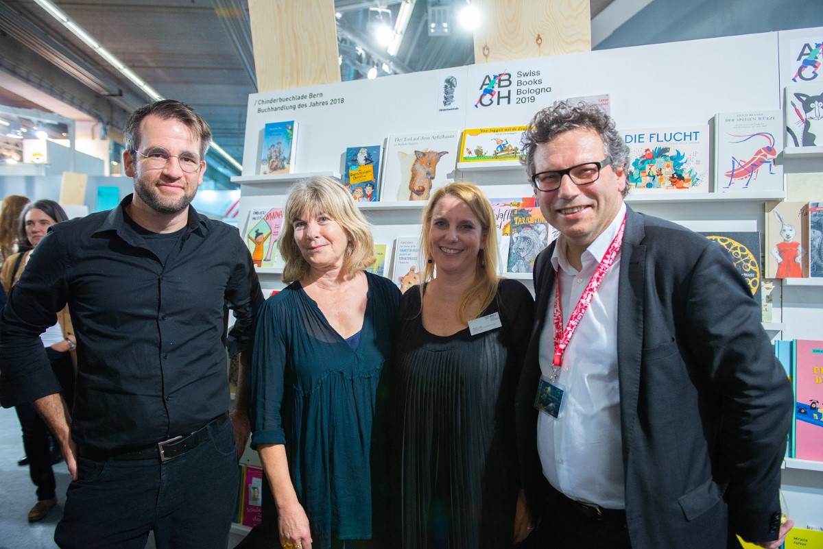 v.l.n.r. Daniel Fehr, SIKJM, Gisela Klinkenberg, OF Kinderbuch, Myriam Lang, SBVV und Herwig Bitsche, NordSüd Verlag.