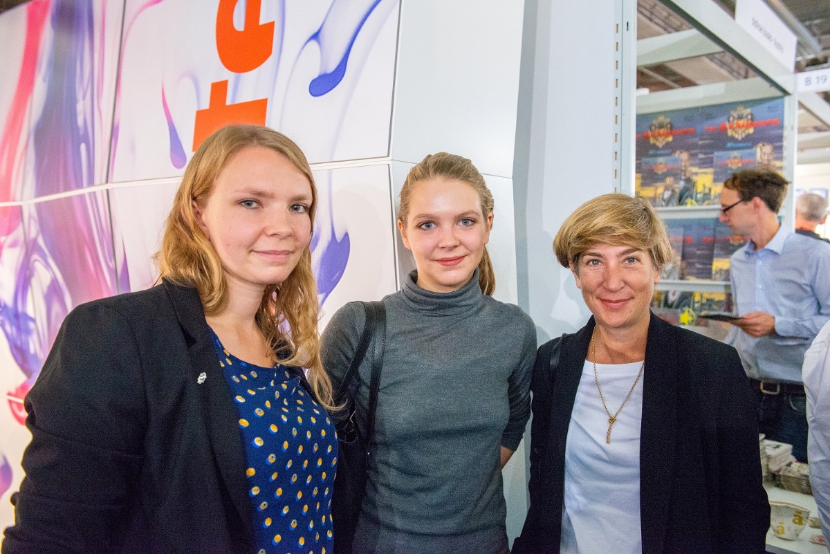 v.l.n.r. Tamara Ulrich, Praktikantin beim Zytglogge Verlag, Sidonie Jeremié, Praktikantin beim Literaturhaus Zürich und Gesa Schneider, Literaturhaus Zürich.