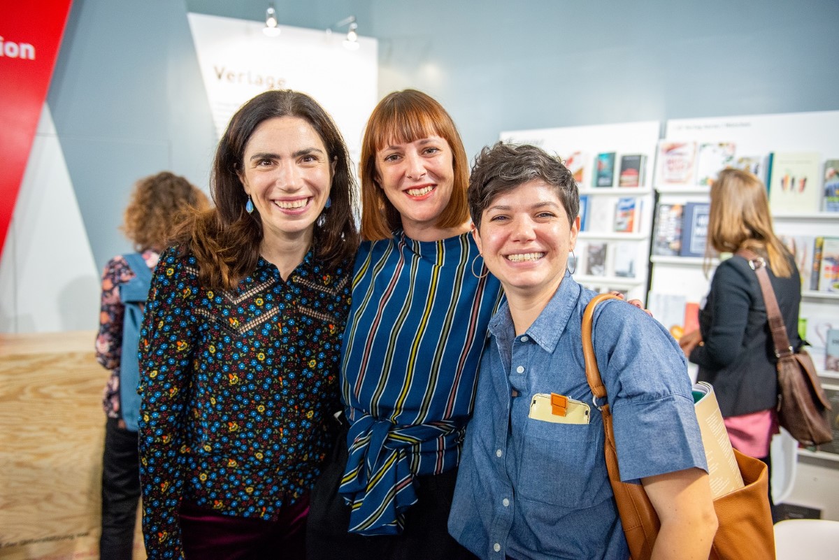 v.l.n.r. Dana Grigorcea, Autorin, Nathalie Widmer, Limmat Verlag und Franziska Sonderer, Kein & Aber.