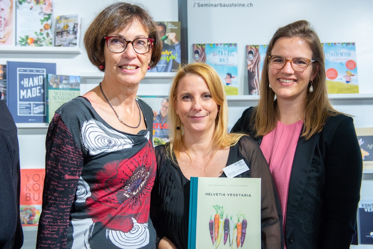 v.l.n.r. Brigitte Bosshard Bordoni, AT Verlag, Myriam Lang, SBVV und Anne-Cathérine Schürmann, AT Verlag.